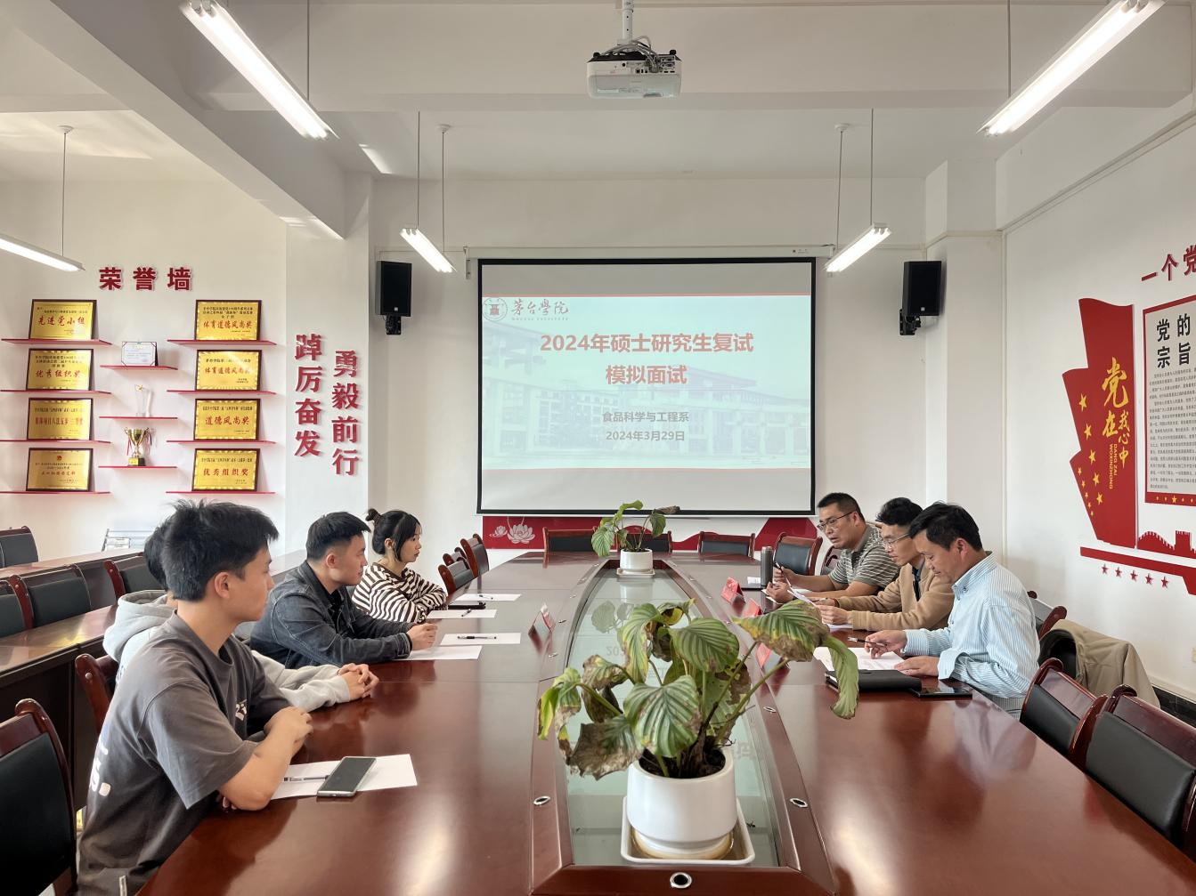 为落实青娱乐极品视觉盛宴考研工作推进会议精神,切实做好考研保障服务,2024年3月29日下午2点,食品科学与工程系举行了2024年硕士研究生复试模拟面试。本次模拟面试由食品科学与工程系副主任刘旭东、食品质量与安全教研室主任张国强、专任教师谢锋组成模拟面试小组,为进入复试的同学们进行指导。