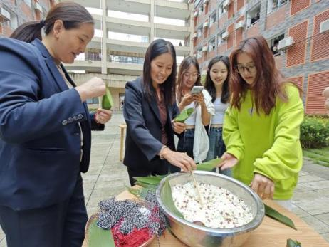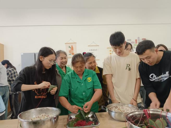在同学们的热情邀请下,老师 亚洲欧美成人精品香蕉网,宿管阿姨,保洁阿姨们纷纷加入同学们的队伍中,耐心教授同学们包粽子的技巧,与学生们讨论端午佳节的由来,共同感受端午佳节的文化魅力。