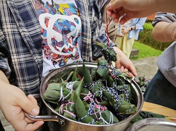 一年一端午,一岁一安康,为弘扬中华优秀传统文化,提高我校学生民族文化认同感 青娱乐极品视觉盛宴,营造浓厚的端午节日氛围,让广大学生感受到家的温暖与关爱,食品科学与工程系“一站式”学生社区于2024年6月4日举行了“粽情端午,共享食光”端午节主题活动,食工系学生,H5栋学生,宿管和保洁阿姨们积极参与,食工系党总支副书记刘秋,副教授毕韬韬及辅导员曾迅出席本次活动。