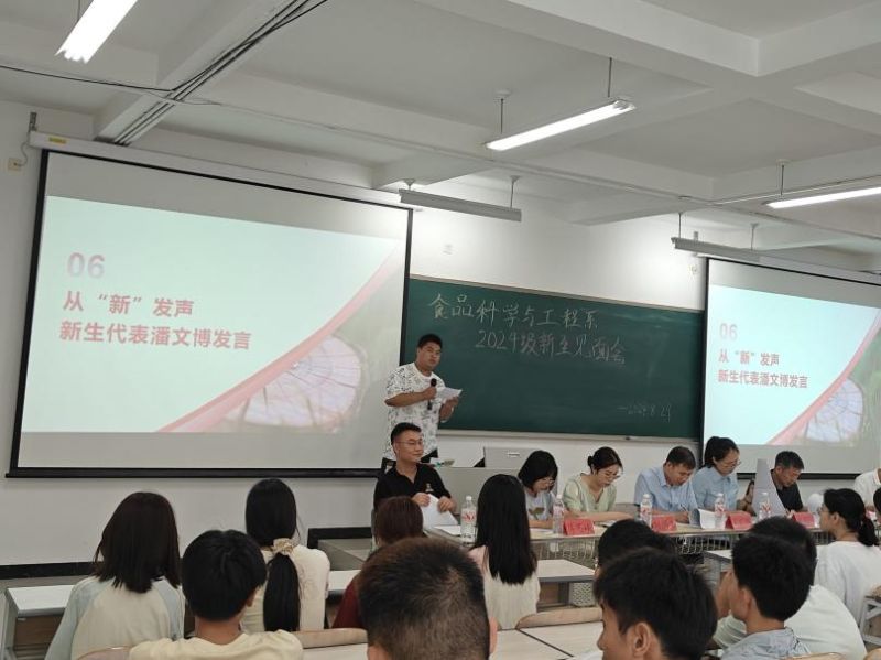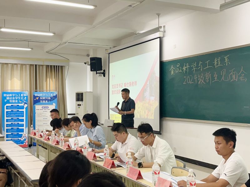在这金秋送爽,硕果累累的美好时节,食品科学与工程系迎来了2024级本科新生,为了增进新同学对系部的了解,帮助新生适应大学生活,我系召开了2024级本科新生见面会,参与本次会议的老师有食品科学与工程系党总支书记喻仕瑞 青娱乐极品视觉盛宴,副书记刘秋,副主任刘旭东和何珺珺,教研室主任,团总支书记,2024级各班主任及辅导员。