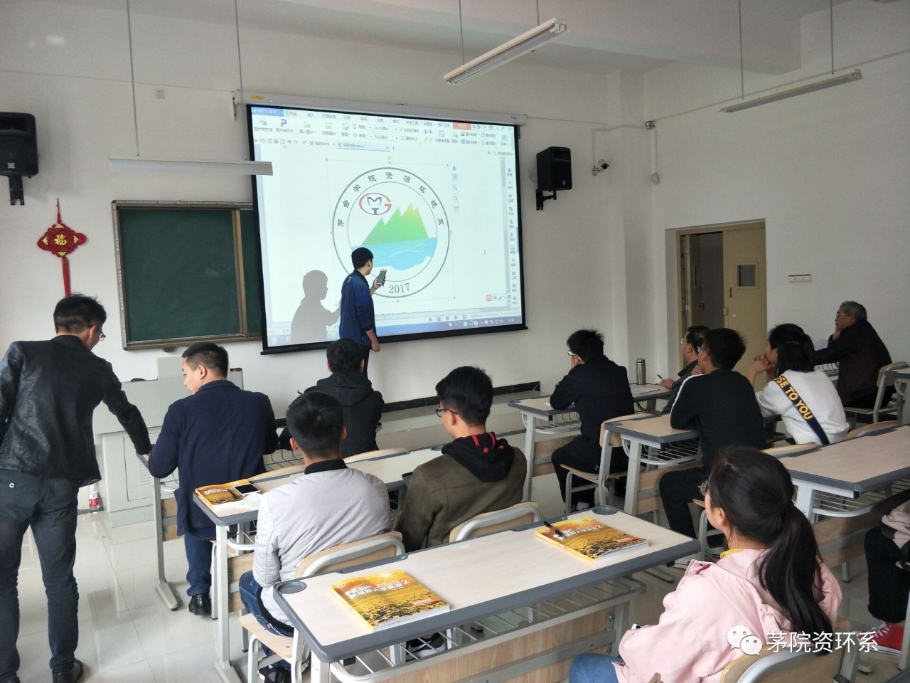 2018年3月22日,资源环境系系徽设计大赛初赛在A2-304教室举行,系主任穆彪教授及潘自平、郭继元、刘京、潘昌滨等作为专业评委老师。本次初赛共有25件作品参赛,设计者们纷纷上台对自己的构思和色彩运用等进行讲解。活动中,同学们对系徽设计的独特含义和别出心裁的理念深深吸引了在场的所有观众,赢得阵阵掌声。