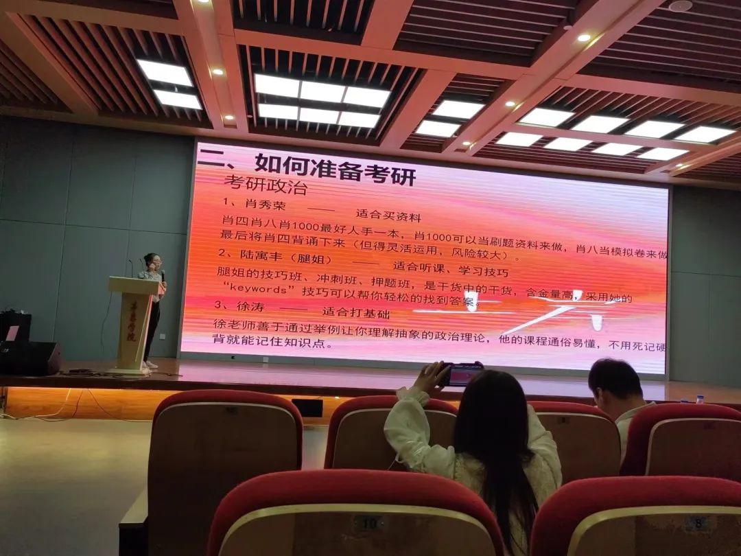 周铝,徐建辉,罗冕三位同学围绕考研动机,如何进行备考,考研资料收集处理,复试经验,跨专业考研,调剂婷婷五月宗合一区二区等方面进行讲解,分享了自己的整个考研过程,建议同学们要自己不断摸索学习方法,积累学习经验,拒绝拖延 成人无码视频,备战考研时要保持良好的心态,缓解焦虑情绪,不断提升自己的学习效率。