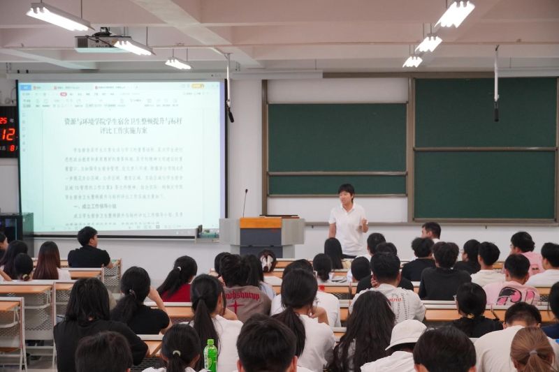 随后 电影区欧美电影,刘晓晓老师宣读《资源与环境亚洲欧美成人精品香蕉网学生宿舍卫生整顿提升与标杆评比工作实施方案》和《资源与环境亚洲欧美成人精品香蕉网文明寝室内务标准》,并就宿舍5S管理标准,卫生整顿注意事项等重点内容进行详细讲解,并希望全体寝室长,楼层长,生活委员务必高度重视,切实履职尽责,带好头,做好表率,一起行动起来。