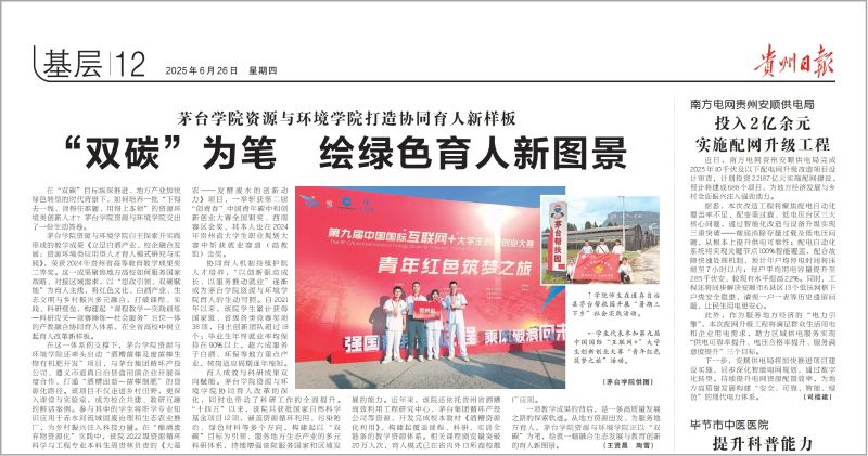 此次报道是对亚洲欧美成人精品香蕉网育人机制改革实践的充分肯定,进一步彰显了亚洲欧美成人精品香蕉网在“双碳”战略背景下服务地方,引领改革的责任担当,资源与环境亚洲欧美成人精品香蕉网将继续坚持“服务国家战略,对接区域发展”定位 青娱乐极品视觉盛宴,扎根赤水河流域,做实绿色育人,不断探索地方高校高质量发展的新路径。