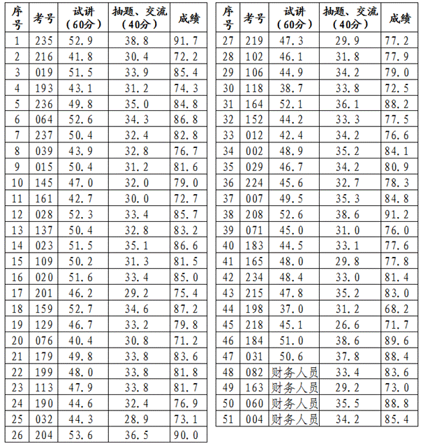 (二)通过笔试进入面试的面试成绩