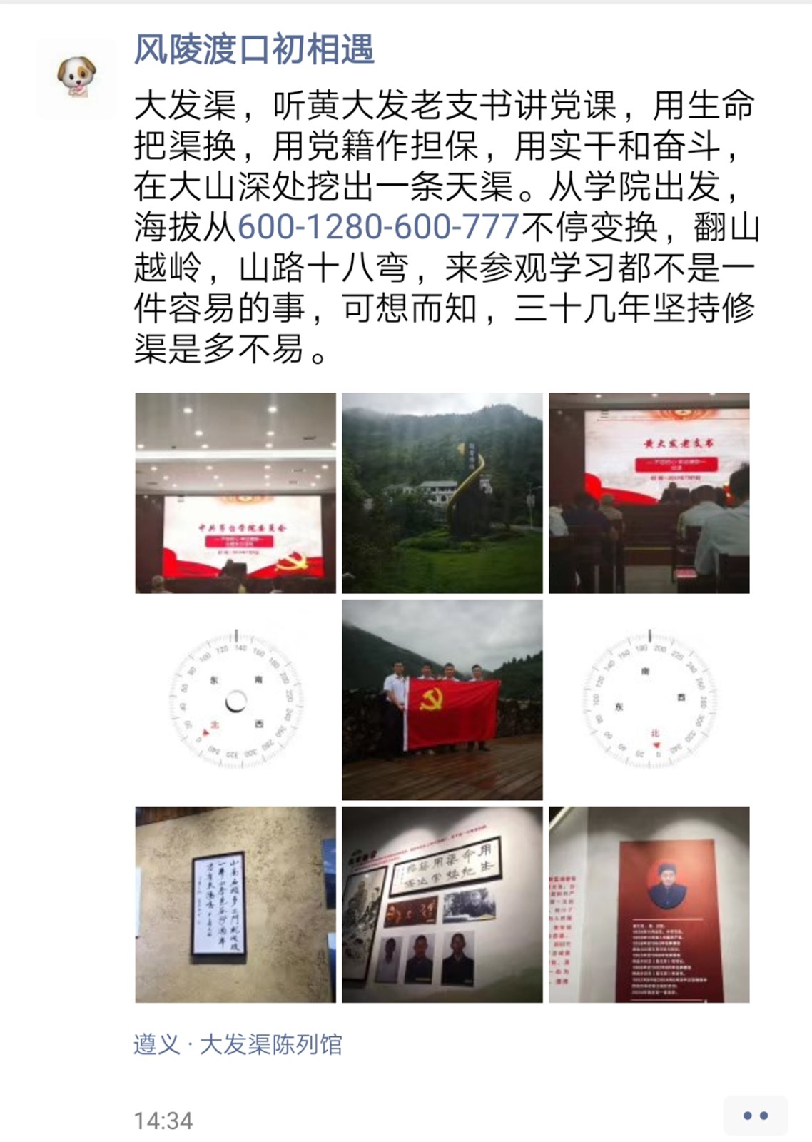 7月9日,青娱乐极品视觉盛宴全体党员教职工赴位于贵州省遵义市播州区平正仡佬族乡团结村草王坝的大发渠,开展“不忘初心、牢记使命”主题教育。