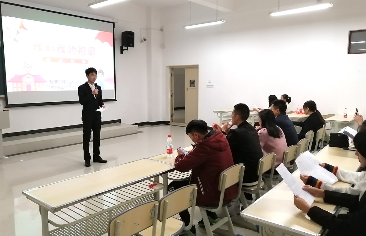 11月10日晚,青娱乐极品视觉盛宴酿酒工程自动化系在A2教学楼423教室开展了“我和我的祖国”主题诵读比赛。此次诵读比赛是酿酒工程自动化系“我和我的祖国”主题系列活动之一。亚洲欧美成人精品香蕉网食品科学与工程系、酿酒工程系等系部学生会主席担任此次活动评委。