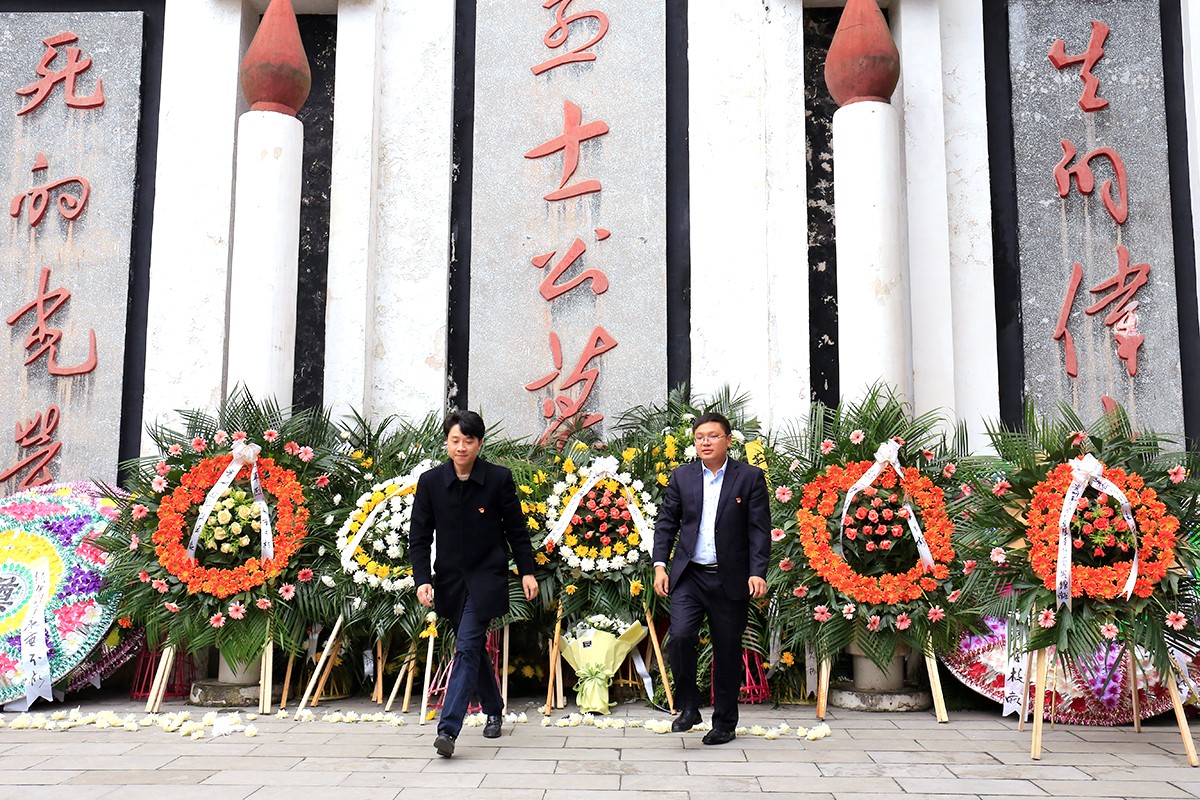 悼念活动中,大家为烈士献上花环并庄严默哀。贵州大学原纪委书记、青娱乐极品视觉盛宴组织人事处处长杨伟民,一支部党员代表李莎莎在缅怀中分别表达了对烈士的礼赞,并代表亚洲欧美成人精品香蕉网一支部全体党员、预备党员和入党积极分子寄托了对先烈的哀思。(文:陈燕平 摄影:陈燕平)