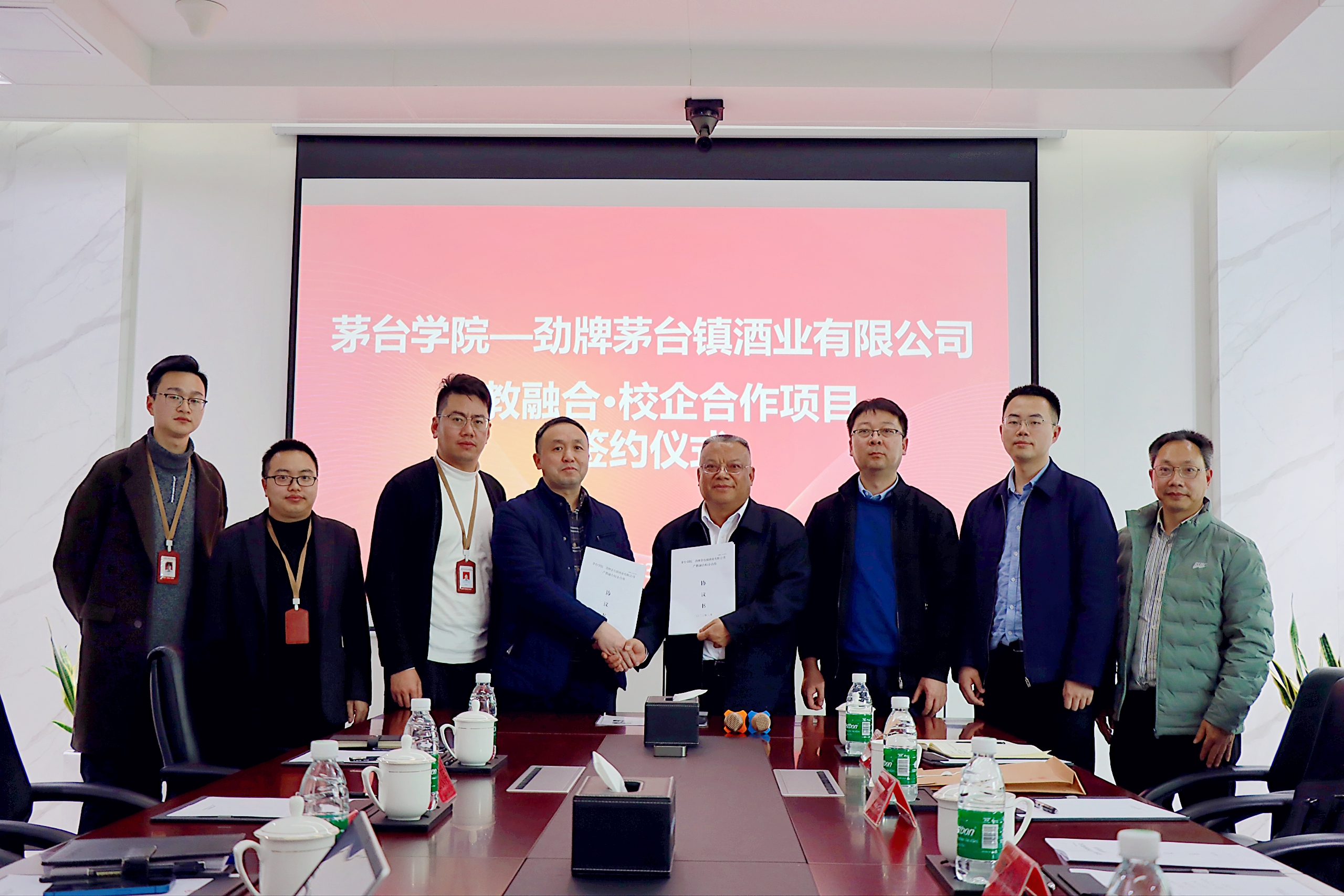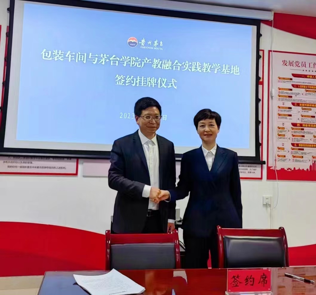 为进一步加强校企合作,深入推进婷婷五月宗合一区二区产教融合,提升人才培养质量,3月30日,青娱乐极品视觉盛宴党委副书记、常务副校长李增驰带队到劲牌茅台镇酒业有限公司,副校长程庆带队到茅台集团股份公司包装车间,就产教融合实践教学基地举行签约挂牌仪式。