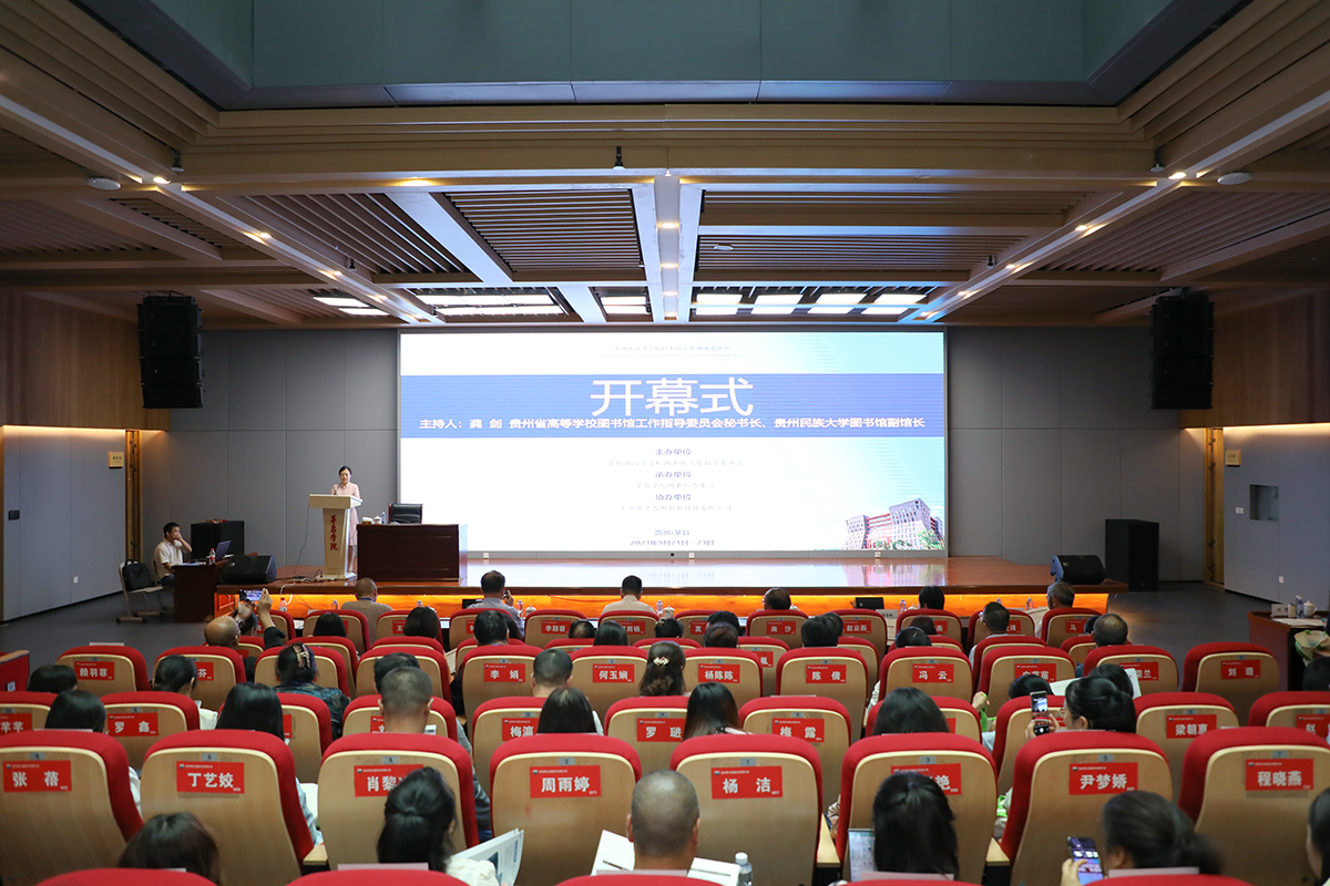 贵州省高等婷婷五月宗合一区二区图书馆工作指导委员会秘书长、贵州民族大学图书馆副馆长龚剑主持开幕式