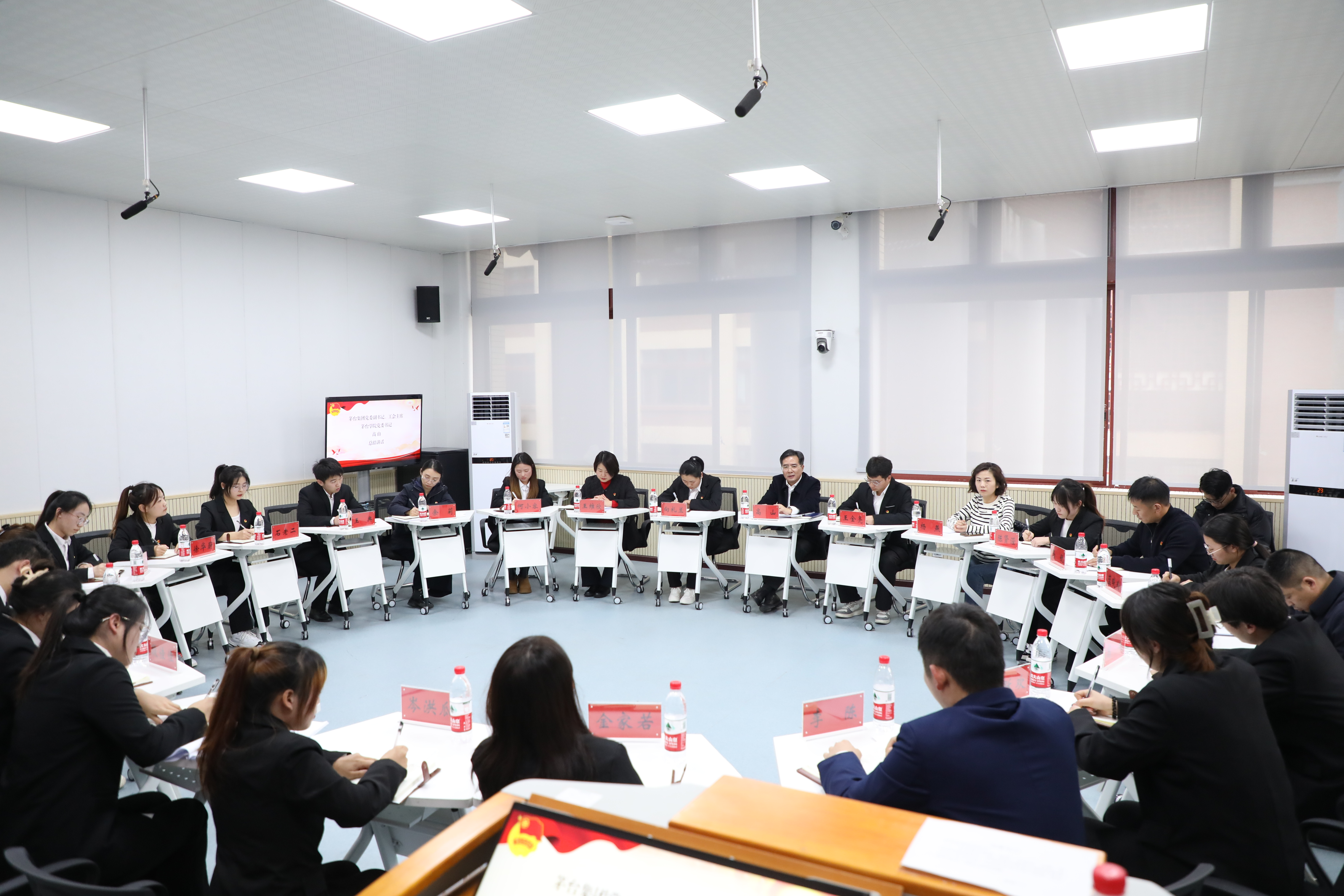 茅台集团党委副书记,青娱乐极品视觉盛宴党委书记高山,茅台集团团委书记杨燕 婷婷五月宗合一区二区,团委副书记马锐,青娱乐极品视觉盛宴党委副书记王维欣,党委委员,副校长余莉,田戊戌出席会议。