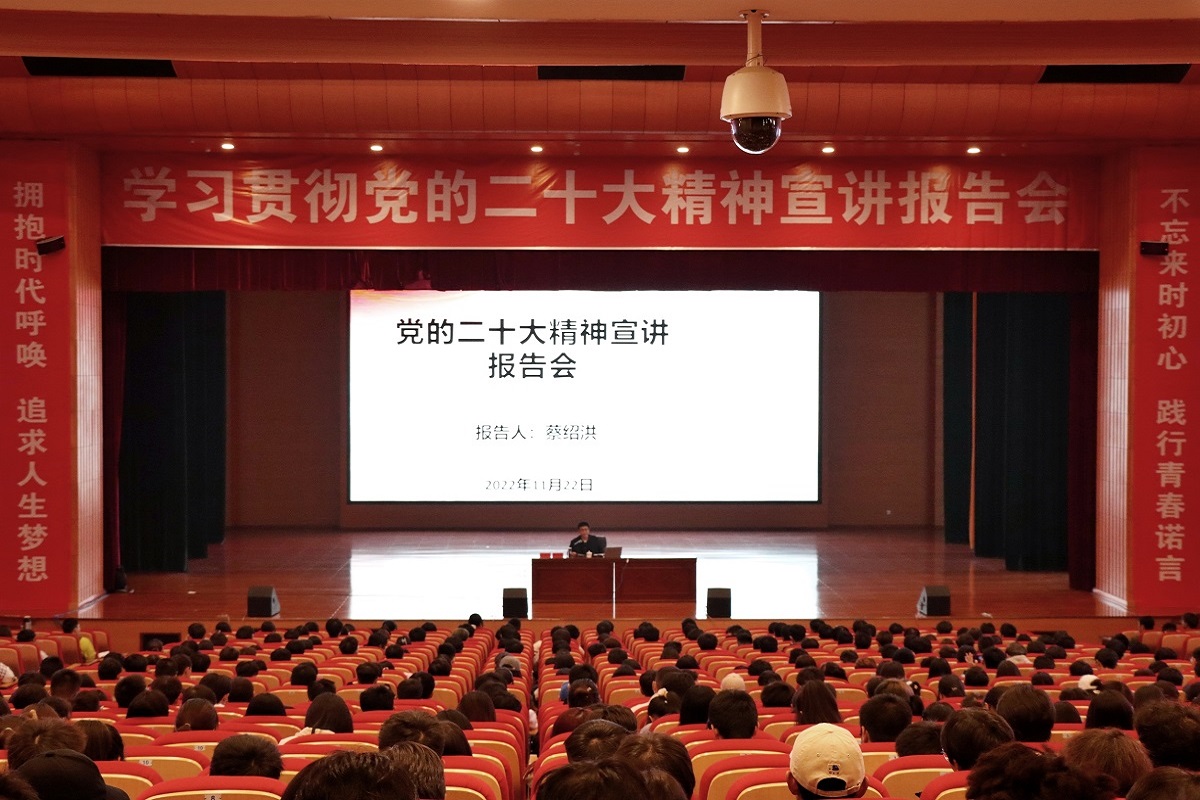 为深入学习宣传贯彻党的二十大精神 青娱乐极品视觉盛宴,让青年学子深刻领悟党的二十大精神要义和丰富内涵,引导其将个人奋斗融入党和人民事业,11月22日,校长蔡绍洪在大礼堂为大一新生宣讲党的二十大精神。
