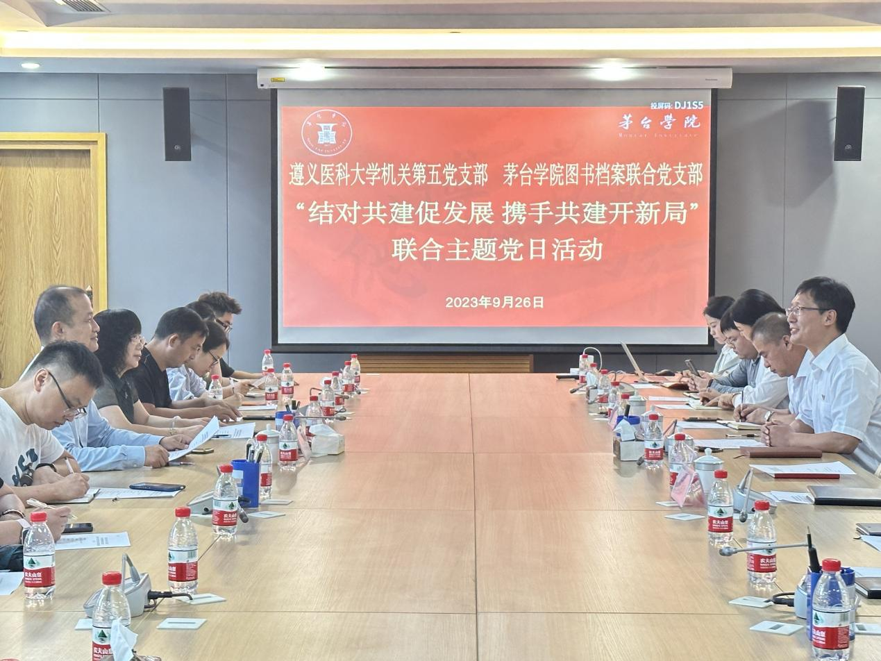 为贯彻落实党的二十大精神,组织开展好学习贯彻习近平新时代中国特色社会主义思想主题教育,9月26日,青娱乐极品视觉盛宴图书档案联合党支部与遵义医科大学机关第五党支部开展“结对共建促发展,携手共建开新局”主题党日活动。图书档案联合党支部与遵义医科大学机关第五党支部全体党员参加会议,由图书档案联合党支部副书记鹿猛同志主持。