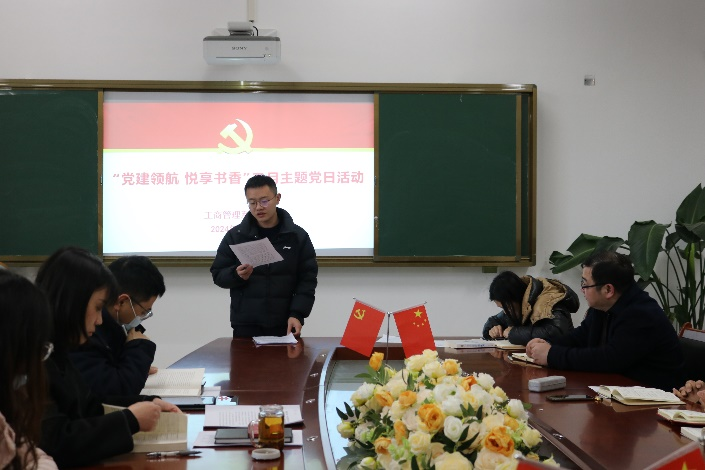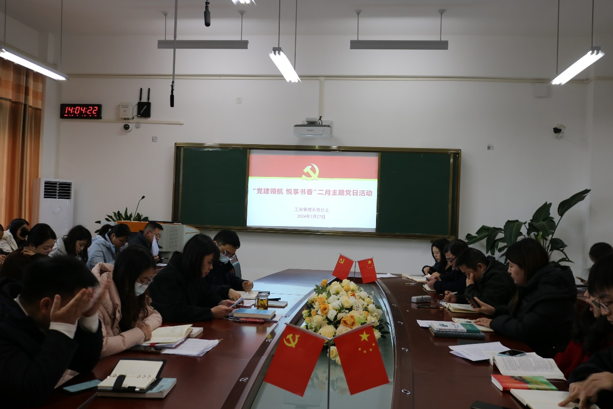为深入学习贯彻党的二十大精神和习近平总书记“多提倡读书,建书香社会”等重要指示精神,激发广大党员读书热情,营造“多读书,读好书,善读书”的良好氛围 青娱乐极品视觉盛宴,建设学习型总支部,2月27日,工商管理系党总支在留芳楼四楼会议室开展“党建领航 悦享书香”主题党日活动,全体教职工党员和学生党员代表参加。
