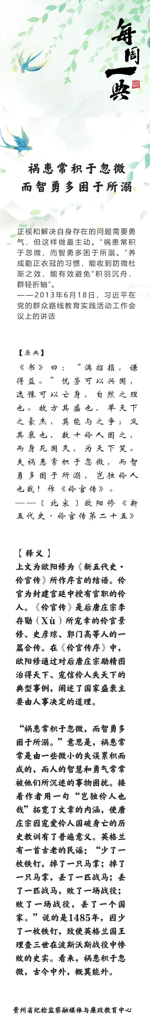 每周一典 | 祸患常积于忽微,而智勇多困于所溺