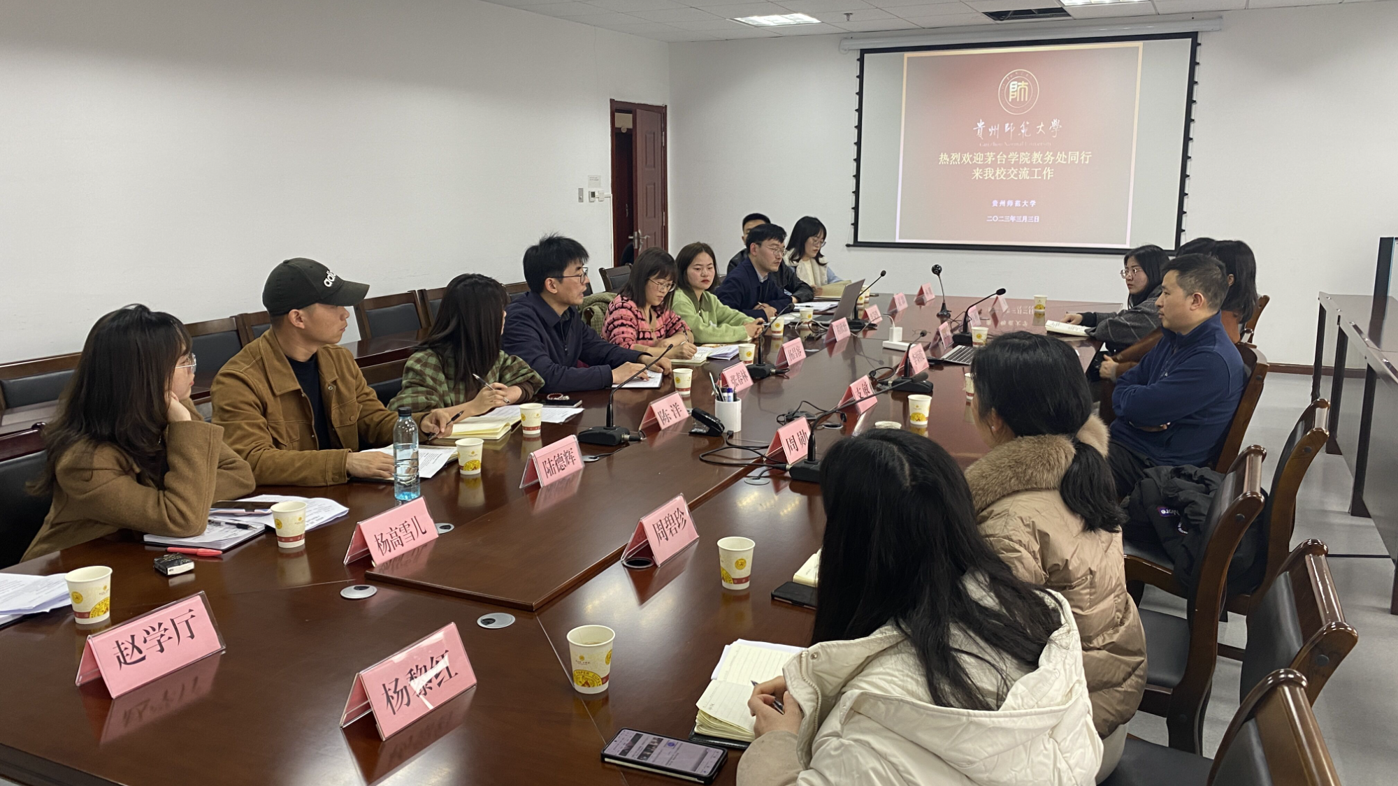 3月3日上午9:00,在贵州师范大学 亚洲欧美成人精品香蕉网,教务处支处长及相关负责人与考察学习团队进行了座谈,对我校一行的来访表示热烈欢迎,并就贵州师范大学的办学理念,教学模式,教师队伍建设及学生教育管理等方面向我们作了详细的介绍,双方还围绕评估评建的有关问题进行了交流和探讨。