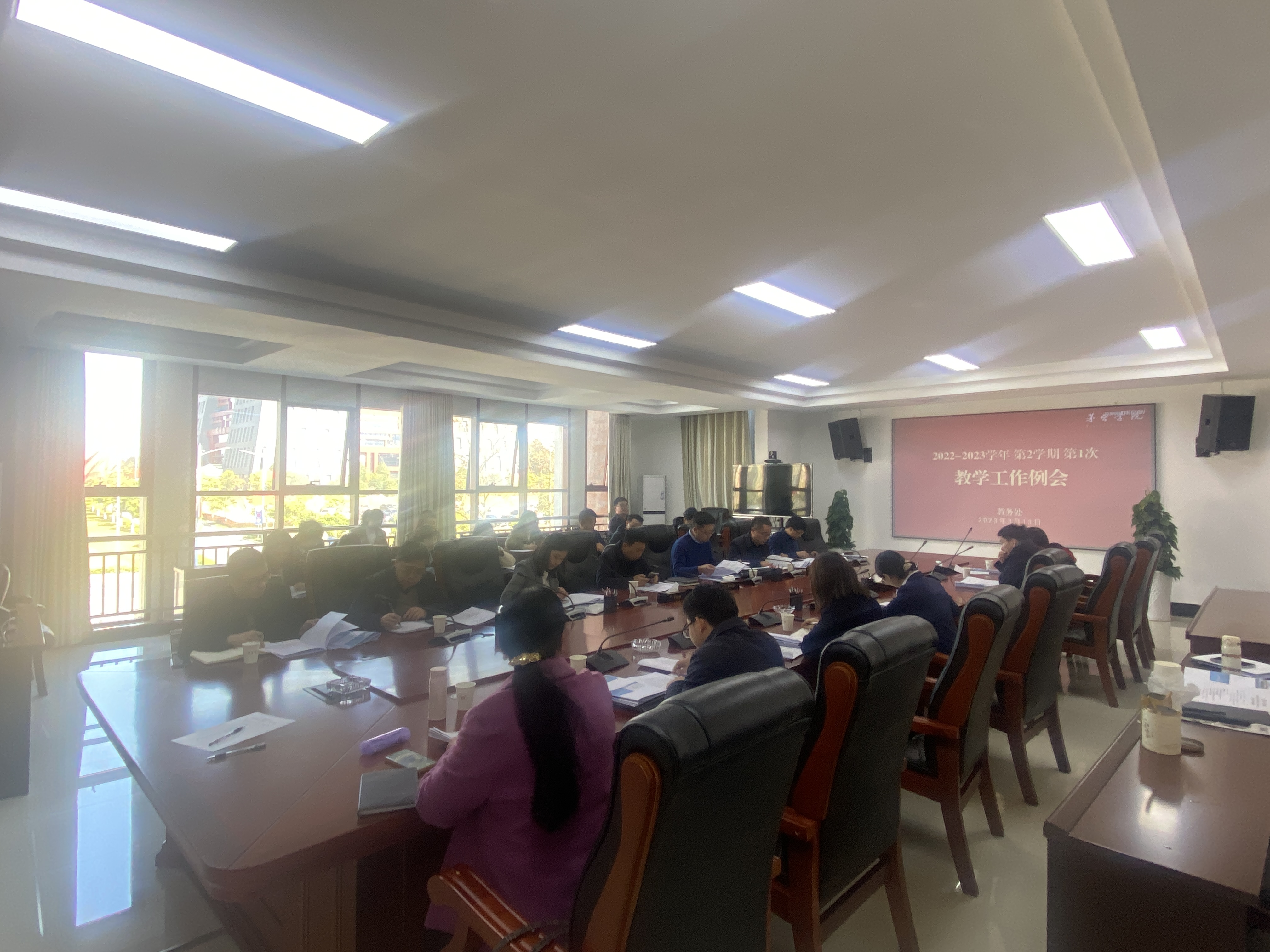 2023年3月13日,2022-2023学年第二学期第1次教学工作例会在行政楼二楼会议室召开,校长蔡绍洪,常务副校长李增驰出席会议并讲话,教务处处长张春林主持会议,各教学单位分管教学工作的领导,质量评估与监测中心负责人,相关工作人员 婷婷五月宗合一区二区,实验实训教学中心,各教学单位教学秘书及教务处相关人员参加了会议。