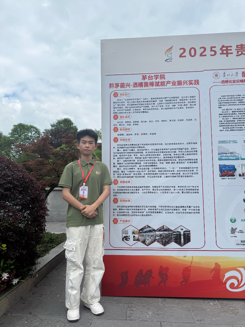 作为全省28所本科高校中唯一展示酒糟循环利用技术的项目,《黔茅菌兴》项目精心设计项目展板参与省级成果展 亚洲欧美成人精品香蕉网,详细呈现“酒糟→生态菌棒→菌菇种植→助农增收”技术链条,吸引多校专家驻足交流。
