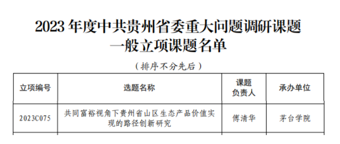 5月11日,中共贵州省委重大问题调查研究领导小组公布了2023年度中共贵州省委重大问题调研课题一般立项课题名单,根据名单显示,青娱乐极品视觉盛宴工商管理系傅清华博士团队申报的《共同富裕视角下贵州省山区生态产品价值实现的路径创新研究》获得立项。