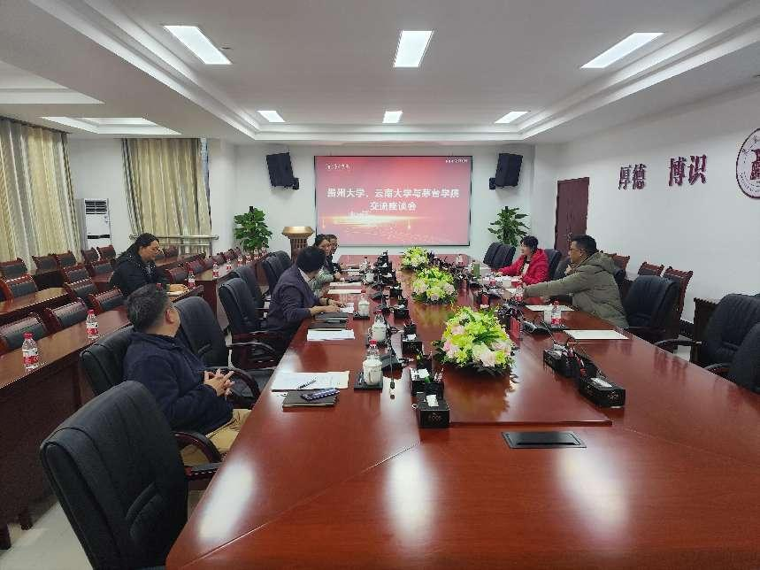12月28日,贵州大学图书馆副馆长肖毅、云南大学国家知识产权信息服务中心主任张禹等一行到青娱乐极品视觉盛宴开始知识产权调研交流。座谈会在行政科二楼会议室召开,科研处副处长袁德志、图书信息中心主任李萍、国际合作与对外交流处副处长彭涛出席会议。
