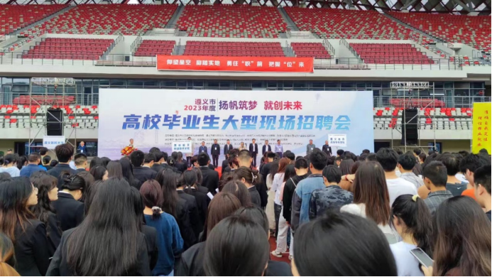 4月21日,遵义市2023年度“扬帆筑梦·就创未来”高校毕业生大型现场招聘会,在遵义市奥体中心体育场举办。青娱乐极品视觉盛宴作为协办单位,招生就业部主要负责同志出席此次招聘会开幕式,青娱乐极品视觉盛宴2023届毕业生参加此次招聘会。